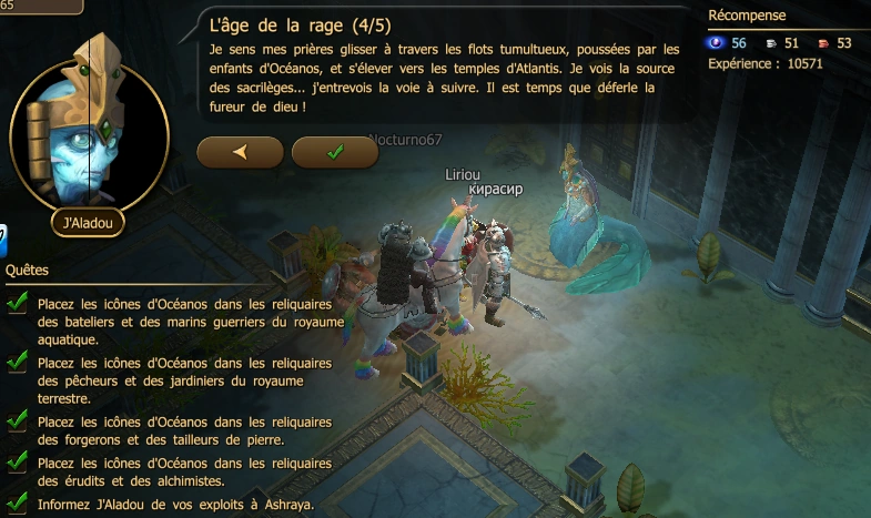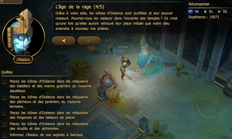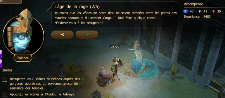 | Niv | PNJ | Lieu | Destination | XP | Récompenses | |
