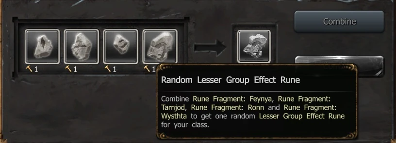 - 4x Rune parts = 1x random Lesser Rune