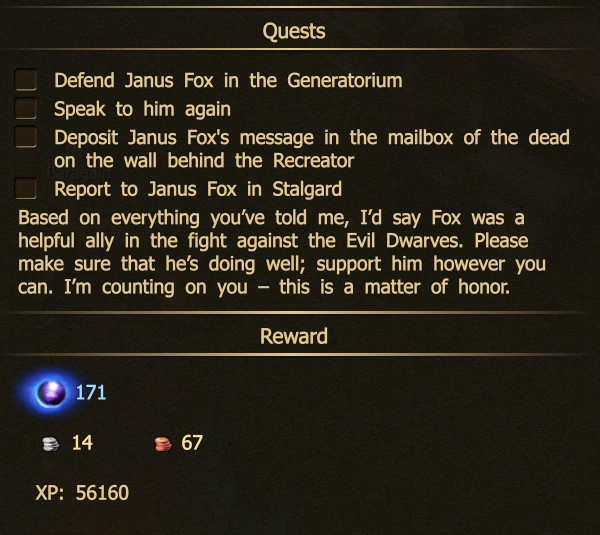 | Lvl | Quest Giver | Location | Destination | Rewards | |